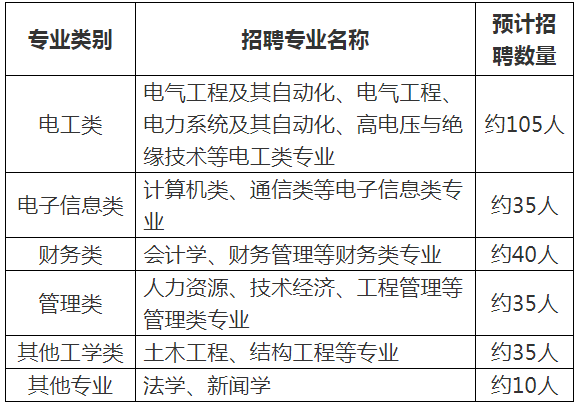 1.第二批招收電工類,計算機、通信等電子信息類,財務類,人力資源、技術經(jīng)濟、工程管理等管理類,土木工程、法學等專業(yè)的優(yōu)秀應屆畢業(yè)生。以上專業(yè)均指主修專業(yè),應與學籍認證報告中專業(yè)名稱相一致。應屆畢業(yè)生應于公司規(guī)定的入職報到時間前取得相應學歷證、學位證等相關證件。