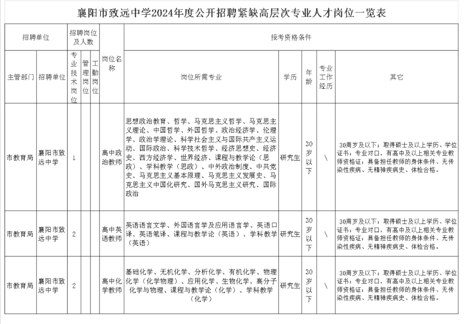 襄陽(yáng)市致遠(yuǎn)中學(xué)2024年度公開招聘緊缺高層次專業(yè)人才公告