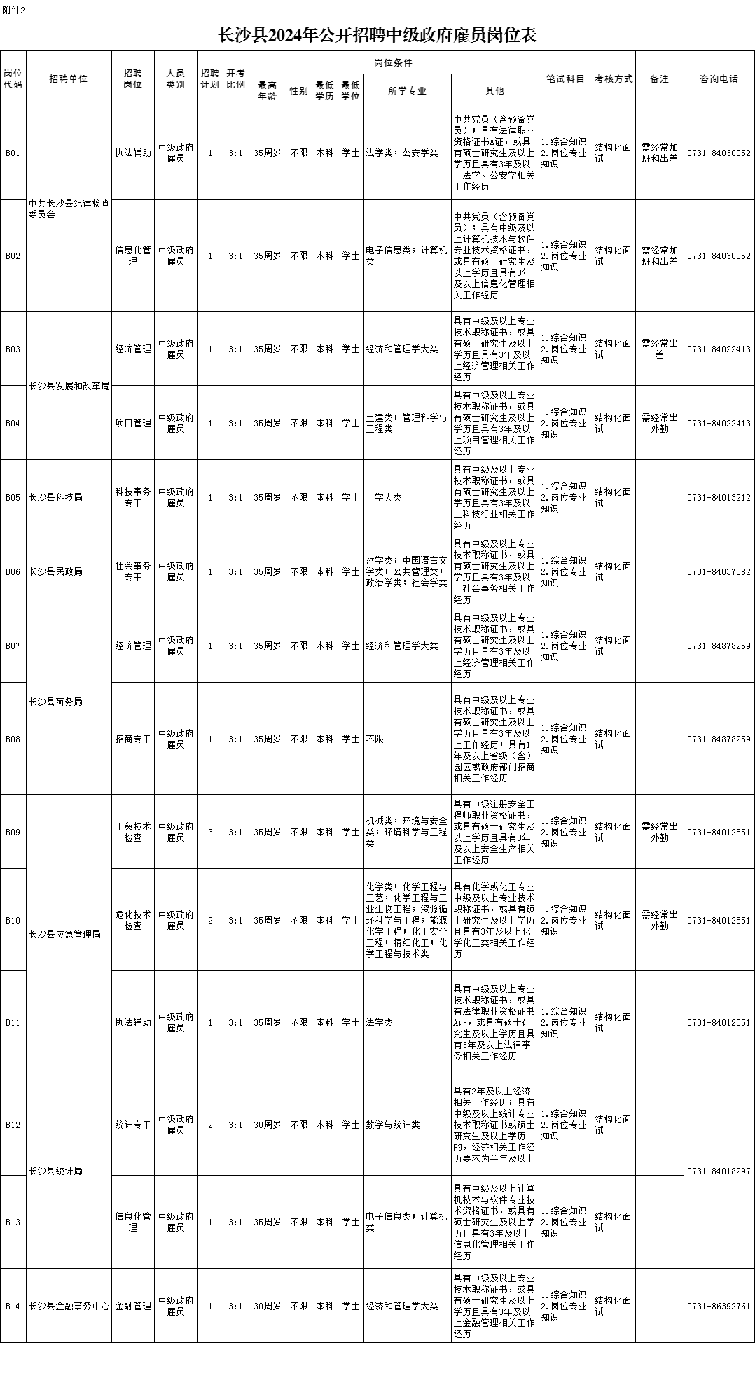 2.長沙縣2024年公開招聘中級政府雇員崗位表