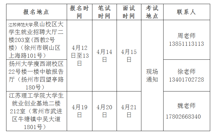 本次招聘在揚州大學、江蘇師范大學、江蘇理工學院分別設點實施公開招聘。符合報名資格條件的考生根據(jù)各考點崗位情況選擇就近考點現(xiàn)場報名。本次各招聘相關信息請及時關注濱海縣教師發(fā)展中心官網(wǎng):https://bhjsfz.cn/。
