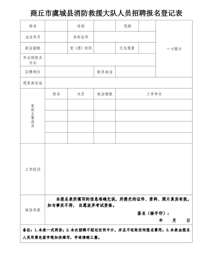 2.商丘市虞城縣消防救援大隊人員招聘報名登記表