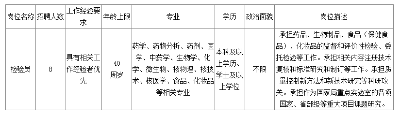 上海市食品藥品檢驗研究院2024年公開招聘工作人員公告