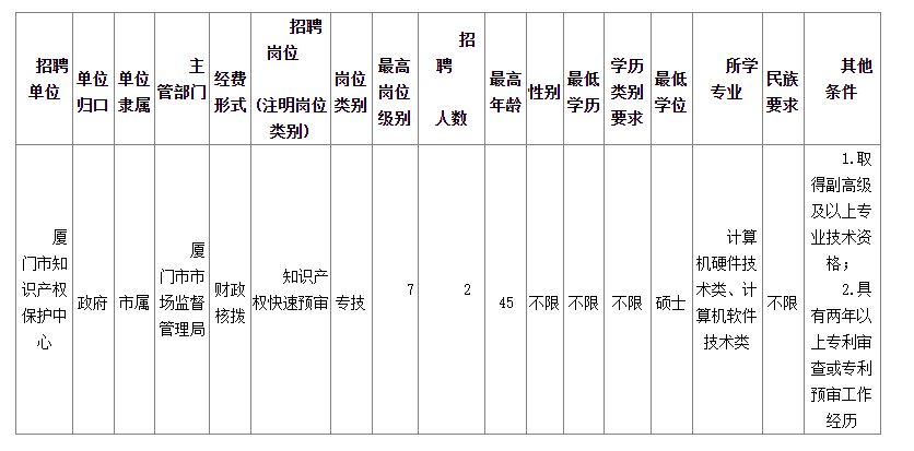 廈門(mén)市市場(chǎng)監(jiān)督管理局所屬事業(yè)單位廈門(mén)市知識(shí)產(chǎn)權(quán)保護(hù)中心簡(jiǎn)化程序補(bǔ)充工作人員公告(2024年4月)