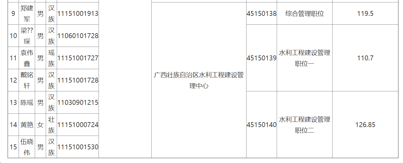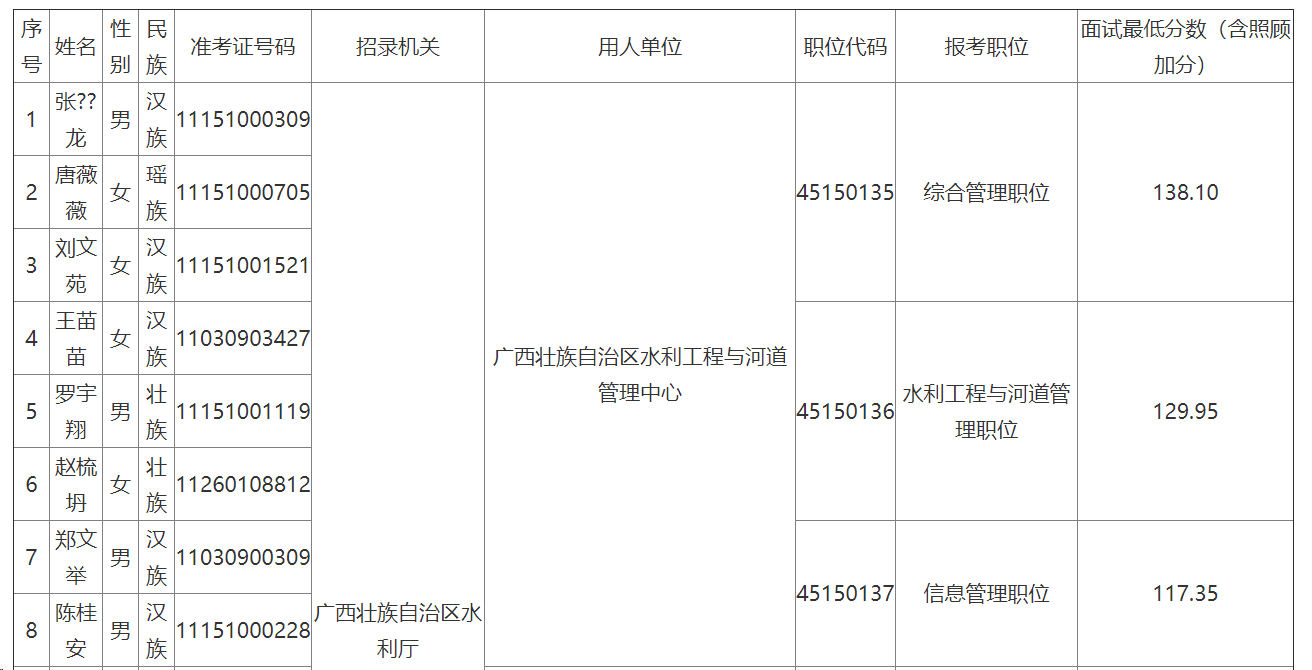 自治區(qū)水利廳2024年度考試錄用參照公務(wù)員法管理單位工作人員面試入圍人員名單