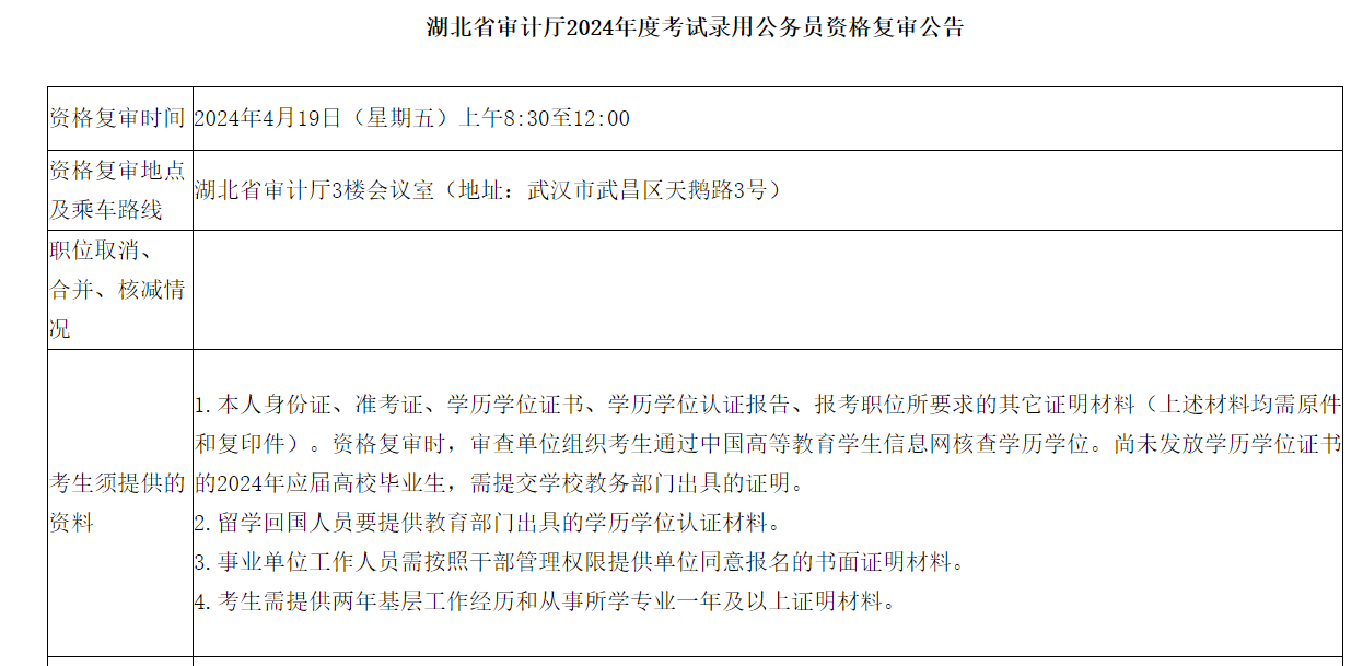 2024年湖北省審計(jì)廳公務(wù)員考試資格復(fù)審公告