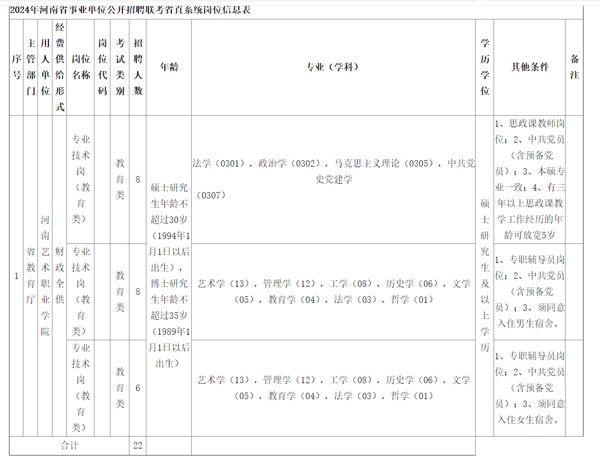 具體要求詳見附件《2024年河南省事業(yè)單位公開招聘聯(lián)考省直系統(tǒng)崗位信息表》。
