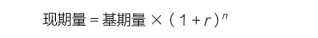 現(xiàn)期量=基期量+增長(zhǎng)量*n(n年份差,即n=現(xiàn)期—基期)