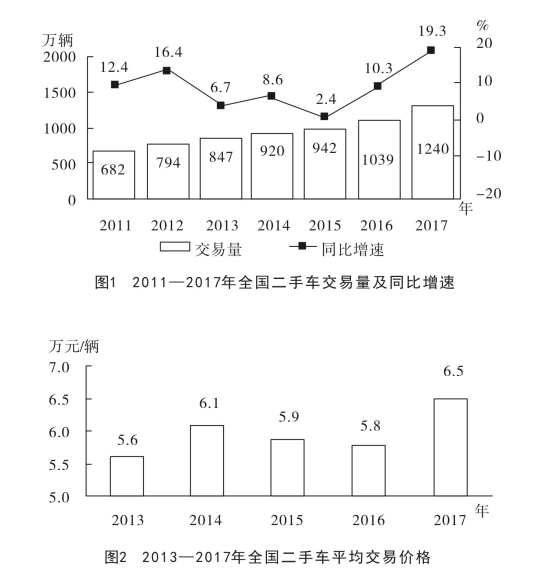 B.2011~2017年,全國(guó)二手車交易量同比增速第4高的年份,當(dāng)年二手車平均交易價(jià)格高于6萬(wàn)元