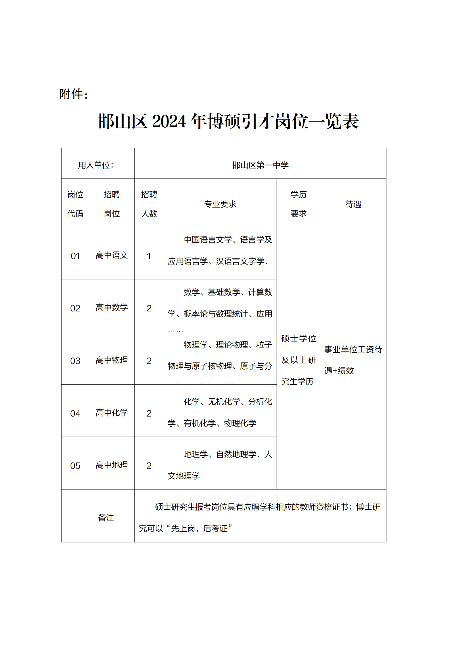 附表: 邯山區(qū)2024年博碩引才崗位一覽表