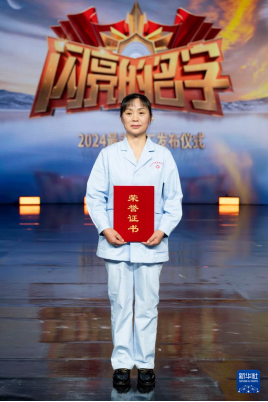 四川省巴中市通江縣大椿養(yǎng)老康復(fù)中心養(yǎng)老護(hù)理員蒲玉在“最美職工”發(fā)布儀式上(4月24日攝)。新華社記者 才揚(yáng)攝