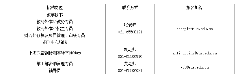 2、報名方式:應(yīng)聘者填寫《2024年上海體育大學(xué)應(yīng)聘人員信息表(姓名+崗位)》(見附件),通過電子郵件(郵件主題為:應(yīng)聘崗位+姓名)發(fā)送至報名郵箱。