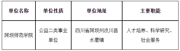 本次選調涉及阿壩師范學院4個崗位(共4個選調名額),其中專業(yè)技術崗位(八級及以下)4個。符合條件人員均可報考,涉及不同崗位類別的選調后按規(guī)定聘用。