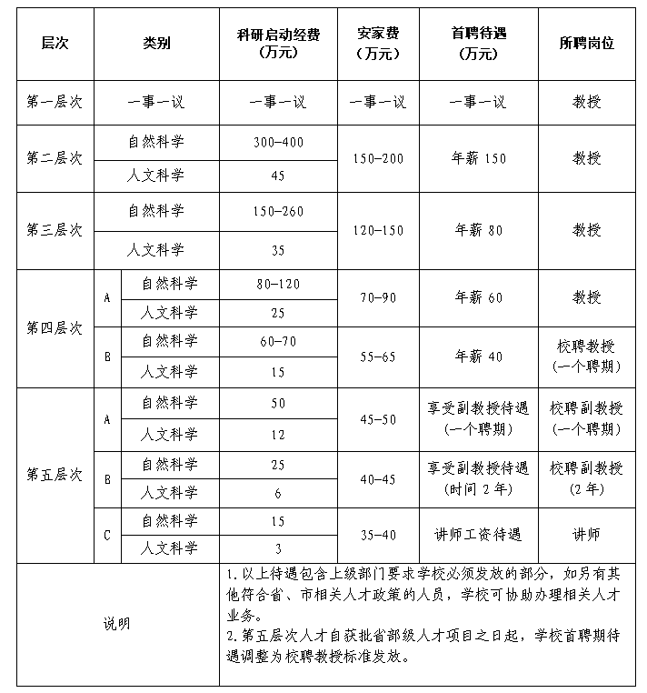 (一)全職引進(jìn)人才,根據(jù)學(xué)校規(guī)定和應(yīng)聘人員學(xué)術(shù)水平,劃分人才層次,兌現(xiàn)相關(guān)待遇。