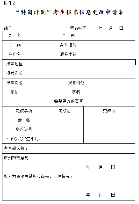 附件:2.“特崗計(jì)劃”考生報(bào)名信息更改申請(qǐng)表
