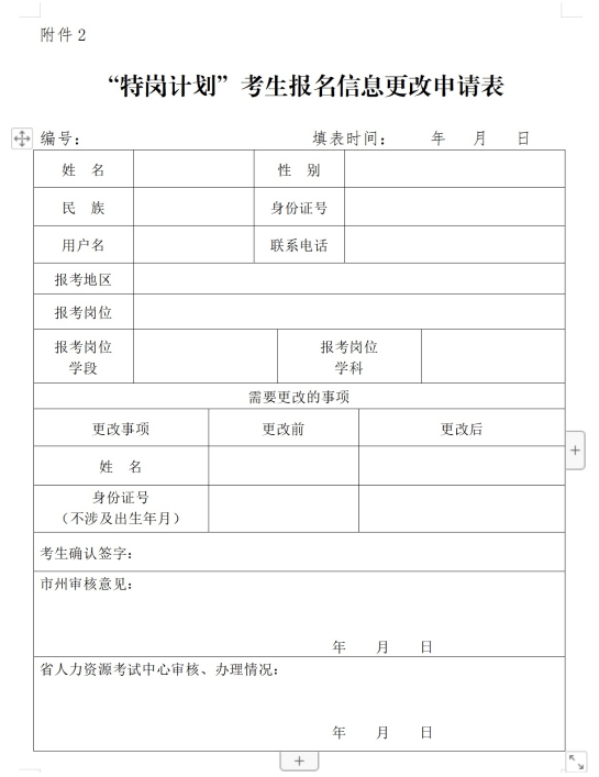 2.“特崗計劃”考生報名信息更改申請表
