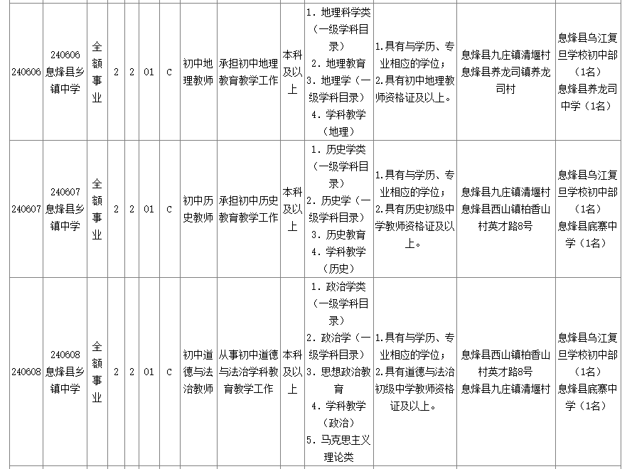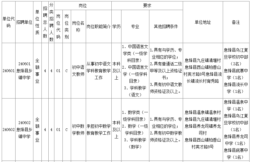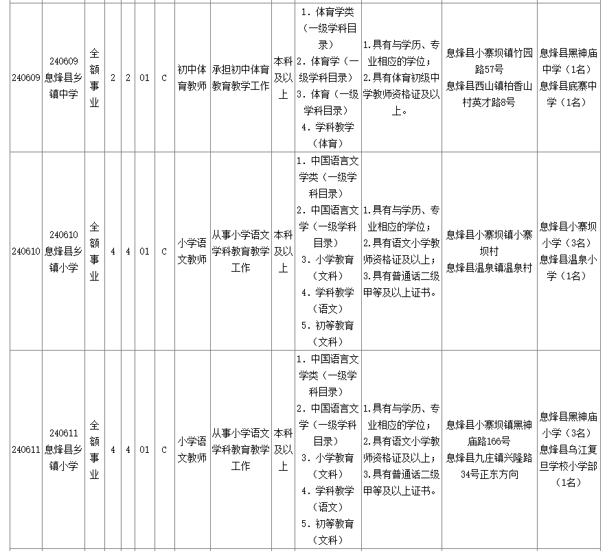 貴陽(yáng)市息烽縣2024年特崗計(jì)劃招聘職位一覽表