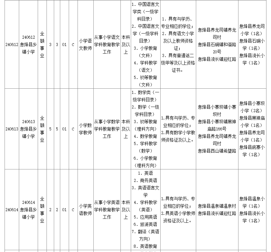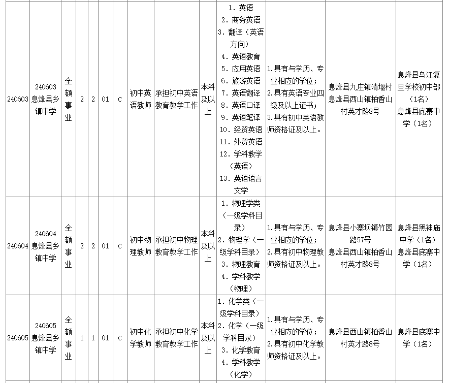 ?。ㄎ澹﹫?bào)考人員所學(xué)專(zhuān)業(yè)與報(bào)考崗位學(xué)科須一致或相近(根據(jù)教育部公布的有關(guān)普通高等學(xué)校專(zhuān)業(yè)目錄),由息烽縣教育局確定,市教育局審核。