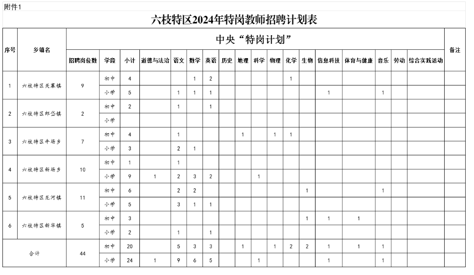 附件:1.六枝特區(qū)2024年特崗教師招聘計(jì)劃表
