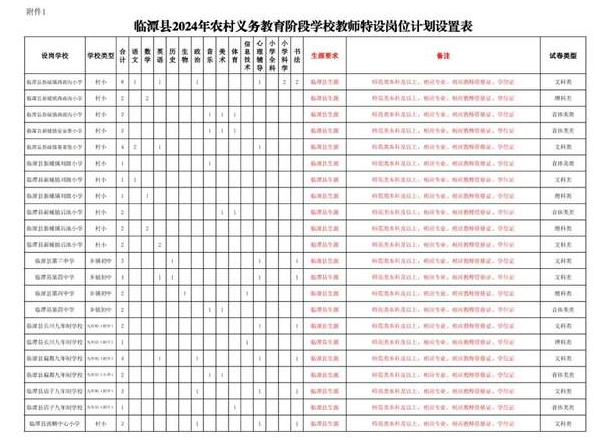 附件:1. 臨潭縣2024年農(nóng)村義務教育階段學校教師特設崗位計劃設置表