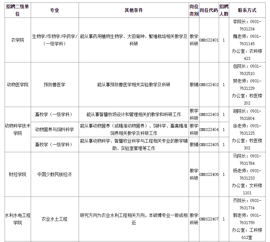 甘肅農(nóng)業(yè)大學2024年公開招聘教師(博士第二期)公告