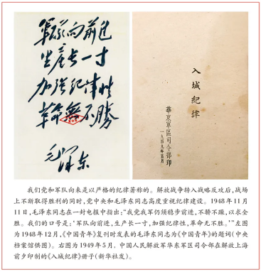 紀律上的要求稍微放松,病毒就會趁虛而入。比如前文提到,從1948年1月到1949年1月,黨中央反復(fù)多次強調(diào)加強紀律建設(shè),應(yīng)該說總的情況是很好的,但也有極個別部隊思想上沒有始終繃緊弦。1949年4月23日,第三野戰(zhàn)軍第35軍進入南京,南京解放,但入城部隊部分官兵破壞紀律的行為,嚴重損害了人民解放軍的聲譽和形象。毛澤東同志親自為中共中央軍委起草電報,對此予以嚴厲批評:“從三十五軍在南京數(shù)天內(nèi)所犯無政府無紀律錯誤行為看來,你們過去在準(zhǔn)備渡江時期,對于外交政策及其他許多事項(例如軍隊在城市中看戲、看電影、洗澡、坐電車、坐公共汽車等事必須和各界人民同樣買票,不許特殊,以及未得上級許可不得接受人民慰勞等)似乎沒有明確規(guī)定。如果沒有規(guī)定,你們應(yīng)速規(guī)定,通令各軍一體遵行。如果過去已有規(guī)定,三十五軍故意違犯,則除檢查該軍工作做出結(jié)論通令各軍外,應(yīng)向各軍重申前令,引起注意,不許再有違犯。”并要求“轉(zhuǎn)發(fā)華野、中野,各軍、各師以資警惕”。
