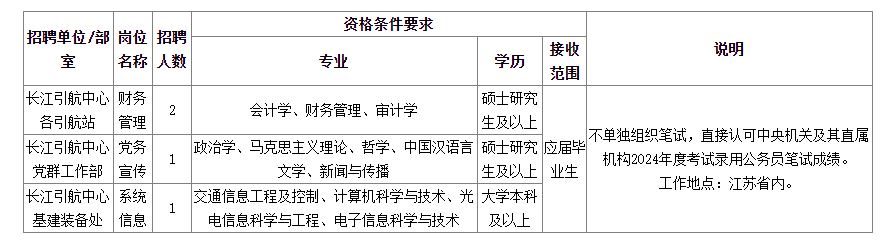 長江引航中心2024年度招聘工作人員公告