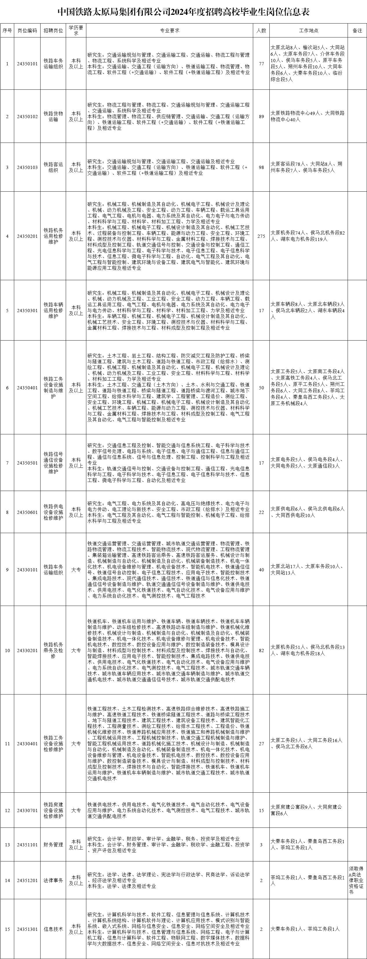 中國鐵路太原局集團(tuán)有限公司2024年招聘高校畢業(yè)生公告(三)