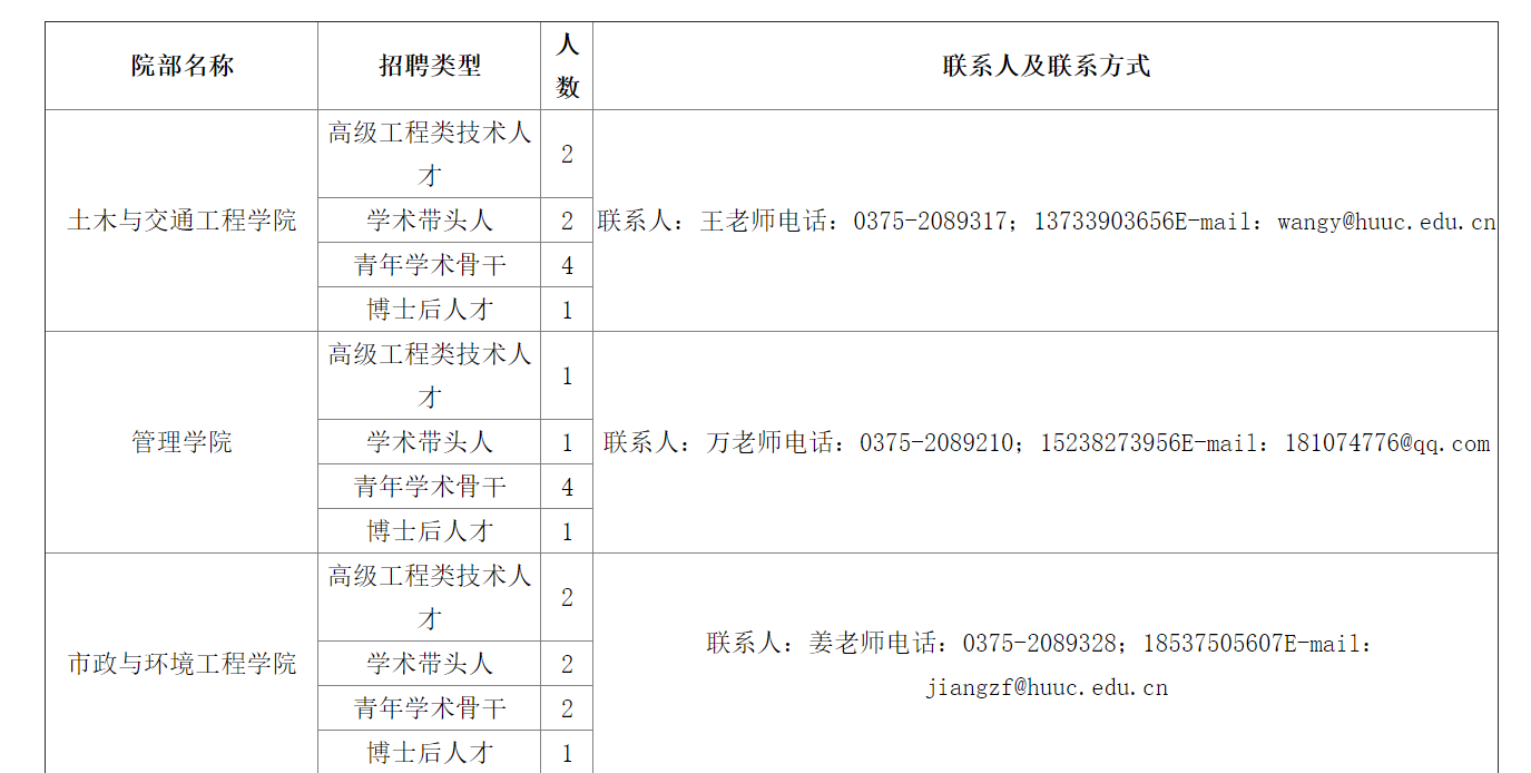 1.院部聯(lián)系人及聯(lián)系方式:詳見(jiàn)招聘計(jì)劃表。