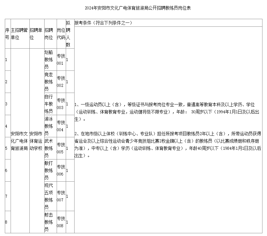 附件:1.2024年安陽市文化廣電體育旅游局公開招聘教練員崗位表