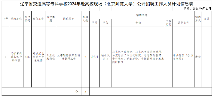 遼寧省交通高等??茖W(xué)校2024年赴高?,F(xiàn)場(chǎng)(北京師范大學(xué))公開招聘工作人員公告
