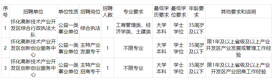 懷化高新區(qū)及所屬事業(yè)單位2024年公開招聘崗位需求表