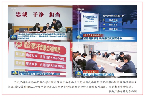 立身百行,以學(xué)為基。中央廣播電視總臺(tái)牢牢把握黨紀(jì)學(xué)習(xí)教育的目標(biāo)要求,突出強(qiáng)思想、督學(xué)紀(jì)、抓轉(zhuǎn)化、提免疫,貫通學(xué)習(xí)研討、培訓(xùn)解讀、警示警醒、文化涵育,在學(xué)習(xí)貫徹新修訂的《條例》上下功夫、見實(shí)效。堅(jiān)持原原本本、深學(xué)細(xì)悟,逐章逐條學(xué)習(xí)《條例》,學(xué)懂弄通“六項(xiàng)紀(jì)律”,把握好新變化、新要求,弄明白能干什么、不能干什么,做到既知其然又知其所以然。堅(jiān)持融會(huì)貫通、聯(lián)系實(shí)際,以《條例》為鏡子,把自己的思想擺進(jìn)去、把工作擺進(jìn)去、把職責(zé)擺進(jìn)去,用具體條文約束自己,用黨規(guī)黨紀(jì)校正思想和行動(dòng)。堅(jiān)持以案促學(xué)、以訓(xùn)助學(xué),用身邊事教育身邊人,以案說德、以案說紀(jì)、以案說法、以案說責(zé),突出抓好領(lǐng)導(dǎo)干部、年輕干部、播音員主持人等關(guān)鍵崗位干部的教育培訓(xùn),自覺把鐵的紀(jì)律轉(zhuǎn)化為日常習(xí)慣和行動(dòng)準(zhǔn)繩。堅(jiān)持創(chuàng)新方式方法、做好結(jié)合文章,在總臺(tái)“掌上通”辦公平臺(tái)上線《條例》修訂對(duì)照版和總臺(tái)播音員朗讀版,開辦“每日一學(xué)”專欄,選取《條例》原文推送并進(jìn)行“隨堂測(cè)試”,組織開展總臺(tái)黨紀(jì)學(xué)習(xí)微視頻征集展播活動(dòng)和《條例》知識(shí)競(jìng)賽,多措并舉強(qiáng)化學(xué)習(xí)教育效果。把開展黨紀(jì)學(xué)習(xí)教育與加強(qiáng)政治機(jī)關(guān)建設(shè)緊密結(jié)合起來,進(jìn)一步提高政治判斷力、政治領(lǐng)悟力、政治執(zhí)行力;與深化總臺(tái)風(fēng)氣建設(shè)緊密結(jié)合起來,進(jìn)一步固本培元、扶正祛邪,持續(xù)鞏固總臺(tái)風(fēng)清氣正的政治生態(tài);與推動(dòng)總臺(tái)高質(zhì)量發(fā)展緊密結(jié)合起來,準(zhǔn)確運(yùn)用“四種形態(tài)”,落實(shí)“三個(gè)區(qū)分開來”,守好底線、不逾“紅線”,海闊天空想、腳踏實(shí)地干,以“大象也要學(xué)會(huì)跳街舞”的精神風(fēng)貌擁抱互聯(lián)網(wǎng)、擁抱人工智能,著力將新質(zhì)生產(chǎn)力轉(zhuǎn)化為新質(zhì)傳播力和媒體引領(lǐng)力,持續(xù)深化“滿屏皆精品”的良好局面,為履行好黨的意識(shí)形態(tài)重鎮(zhèn)職責(zé)使命提供堅(jiān)強(qiáng)保障。