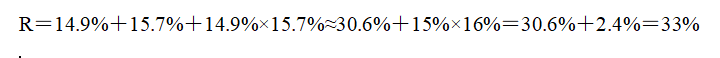 ,代入公式得,R=14.9%+15.7%+14.9%×15.7%≈30.6%+15%×16%=30.6%+2.4%=33%。根據(jù)公式,增長率=(現(xiàn)期量-基期量)/基期量=現(xiàn)期量/基期量-1,則現(xiàn)期量/基期量=1+增長率,代入公式得,2013年3月末,金融機構(gòu)人民幣各項貸款余額約是2011年同期的倍數(shù)=1+33%=1.33倍。與C選項最接近。