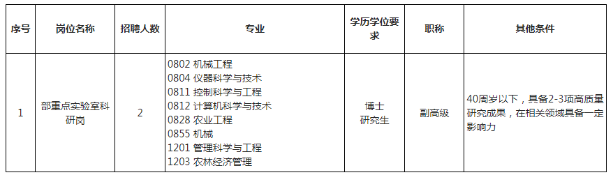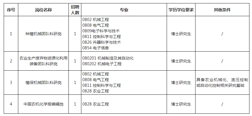 農(nóng)機化所研究方向涉及“農(nóng)業(yè)裝備工程與信息”“農(nóng)業(yè)經(jīng)濟與農(nóng)村發(fā)展”“農(nóng)業(yè)微生物”“農(nóng)業(yè)資源與環(huán)境”等多個學(xué)科集群,是農(nóng)業(yè)工程科研領(lǐng)域國家級研究所。為實現(xiàn)研究所轉(zhuǎn)型創(chuàng)新發(fā)展,更好地選拔優(yōu)秀人才,加強人才隊伍和科研創(chuàng)新能力建設(shè),決定面向國內(nèi)外招聘事業(yè)編制科研崗位工作人員,現(xiàn)將有關(guān)事項公告如下。