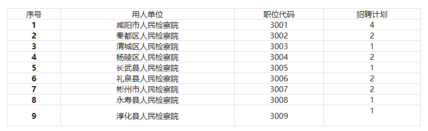 根據(jù)工作需要及相關(guān)政策規(guī)定,經(jīng)陜西省人民檢察院批準,咸陽市檢察機關(guān)面向社會公開招聘聘用制書記員16名?,F(xiàn)將招聘相關(guān)事項公告如下: