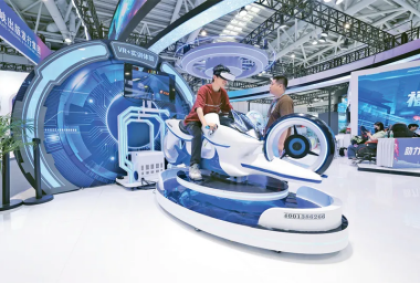 第七屆數(shù)字中國建設(shè)峰會(huì)于2024年5月24日在福建省福州市開幕,峰會(huì)主題為“釋放數(shù)據(jù)要素價(jià)值,發(fā)展新質(zhì)生產(chǎn)力”。圖為市民在峰會(huì)現(xiàn)場體驗(yàn)區(qū)網(wǎng)龍展區(qū)體驗(yàn)光速飛輪VR摩托競速項(xiàng)目。中新社發(fā) 王旺旺/攝