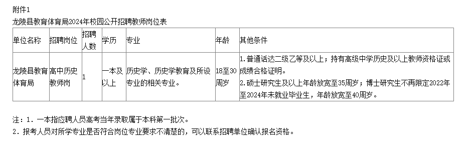 龍陵縣教育體育局計(jì)劃校園公開招聘教師1人。詳見《龍陵縣教育體育局2024年校園公開招聘教師崗位表》(見附件1)。