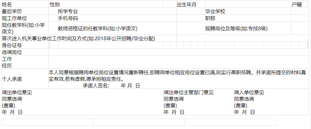 2.2024年德清縣公開選調(diào)縣外在編教師報(bào)名表