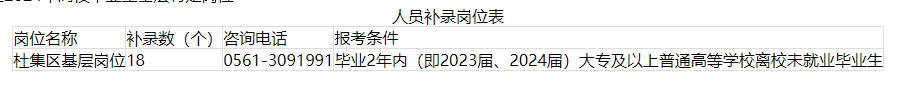 附件:杜集區(qū)2024年高校畢業(yè)生基層特定崗位人員補(bǔ)錄崗位表