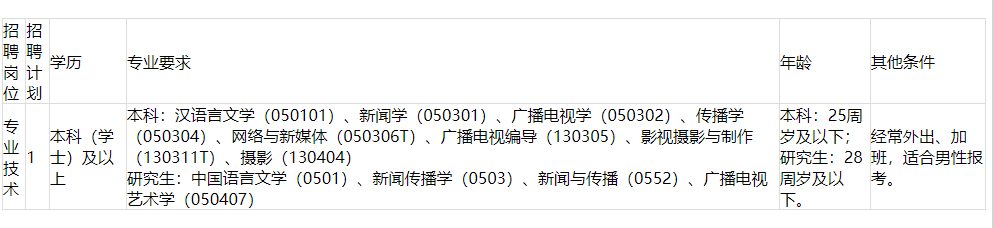 本次公開(kāi)招聘全媒體記者1名。具體崗位計(jì)劃見(jiàn)下表:
