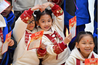 在湖南省長沙市天心區(qū)的湖南師大附中雙語實驗學(xué)校,一年級學(xué)生在趣味闖關(guān)活動中展示自己的闖關(guān)卡片(2024年1月18日攝)。新華社記者陳澤國 攝
