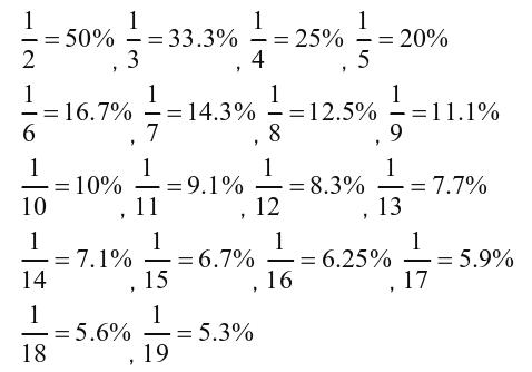 12.5%=1/8、11.1%≈1/9、9.1%≈1/11、8.3%≈1/12、7.7%≈1/13。