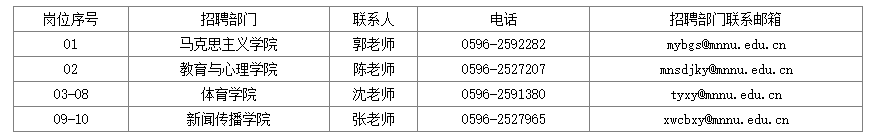 本次招聘工作由閩南師范大學(xué)教師工作部(人事處)和相關(guān)用人部門共同組織實(shí)施。校紀(jì)檢監(jiān)察部門對(duì)公開招聘工作進(jìn)行全程監(jiān)督,監(jiān)督電話:0596-2591404。
