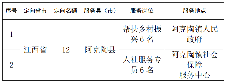 ?。ǘ┓?wù)崗位:克州阿克陶縣幫扶鄉(xiāng)村振興、人社服務(wù)平臺等基層工作崗位(具體崗位見附件1)。