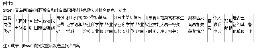 2.2024年青島西海岸新區(qū)教育和體育局招聘緊缺急需人才報名登記表