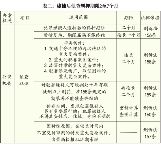 刑事辦案期限一覽表