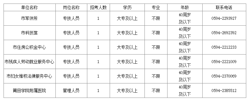 莆田市市直事業(yè)單位定向招考2024年度未就業(yè)隨軍家屬公告