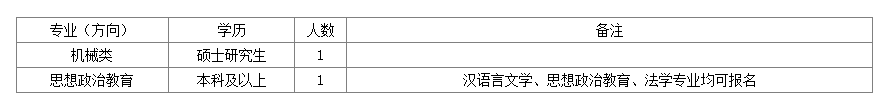 5.機械類碩士研究生學歷,兩年以上工作經(jīng)歷;思想政治教育公辦二本及以上學歷,六年以上工作經(jīng)歷。年齡均45周歲以下。