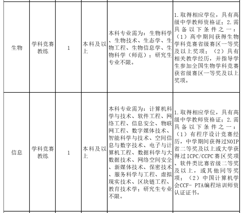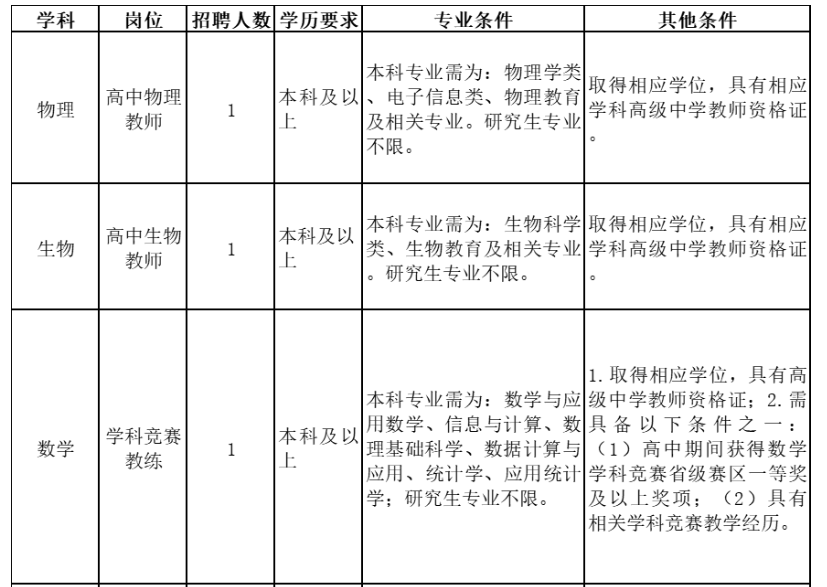 ?。ㄋ模I(yè)要求:所學(xué)專業(yè)與申報(bào)學(xué)科(崗位)對(duì)口,教師資格證書及相應(yīng)的專業(yè)資格證書須在2024年7月31日前取得,能夠熟練操作各種辦公教學(xué)軟件。