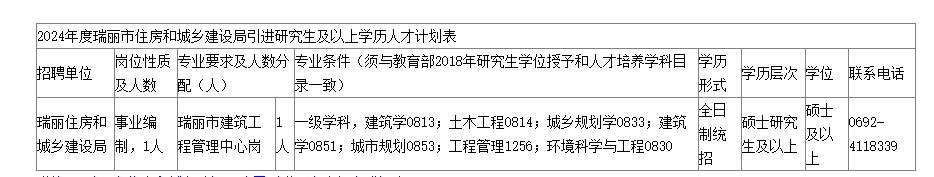 瑞麗市住房和城鄉(xiāng)建設(shè)局2024年度公開(kāi)引進(jìn)碩士研究生公告
